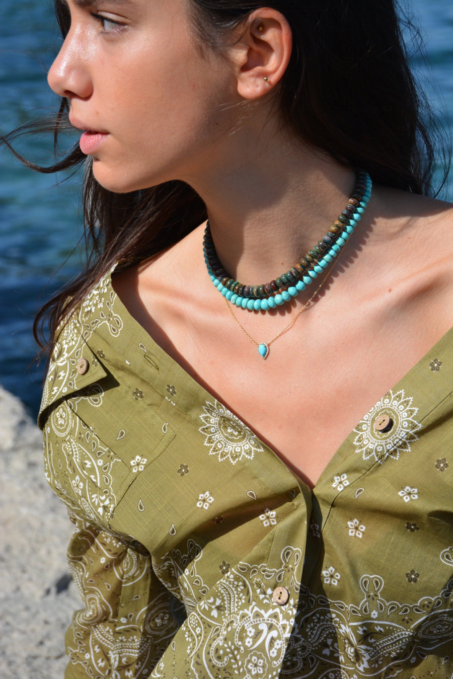 Our Large Turquoise choker is a statement piece featuring wonderful Arizona Turquoise plain beads in graduated size from 6 to 10 mm.